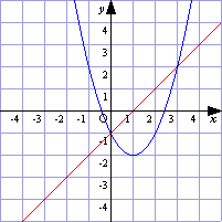 ![]() 2つのグラフの交点の座標は (0,−1)と(3,2) |