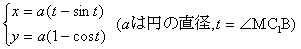 円が直線上をすべらないでころがるとき、その円周上の点Mの描く軌跡