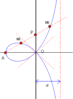 定 義:(M1及びM2は点Aを通る任意の半直線上の点、Pはy軸上の点)となる点M1及びM2の軌跡